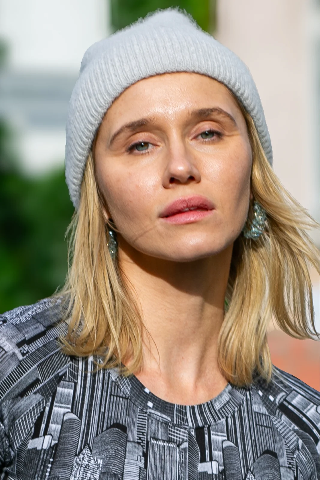 Czapka na lata - wyprodukowana w Polsce z drogocennego runa alpak Suri hodowanych w Południowej Ameryce. Ta bardzo rzadka odmiana alpak ma najdłuższy, najbardziej delikatny, jedwabiście gładki, błyszczący włos, który w odczuciu porównywany jest do jedwabiu. Ma twarzowy, rozświetlający odcień szarości, a do tego jest ciepła oraz pasuje i do płaszczy, i do kurtek. Do kompletu mamy też szalik z tej samej przędzy.